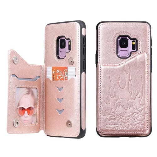 Estuche Protector para Galaxy S9 Skull Head a Prueba de Golpes con Soporte y Ranuras para Tarjetas (Oro Rosa)