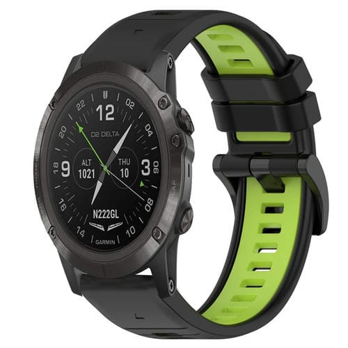 Correa De Silicona Para Garmin D2 Delta Px 26mm Sports Dos Colores (Negro + Verde Lima)