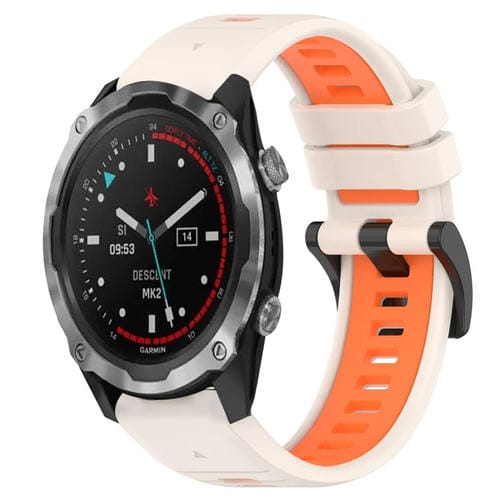 Correa de Silicona Para Garmin Descent Mk 2 26mm Dos Colores (Starlight + Orange)