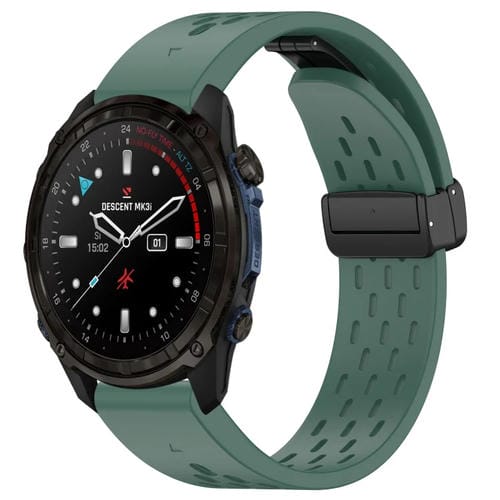Correa de Reloj silicona para Garmin Descent Mk3I Mk3 51mm 26mm con hebilla magnética (Verde Oscuro)