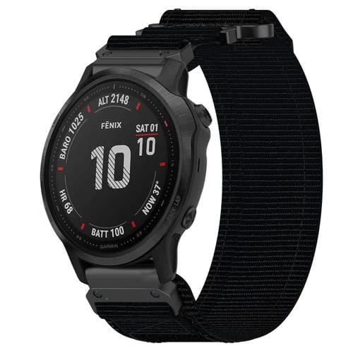 Correa de Reloj para Garmin Fenix 6S Pro Nailon 20mm con Cierre de Gancho y Bucle (Negro)
