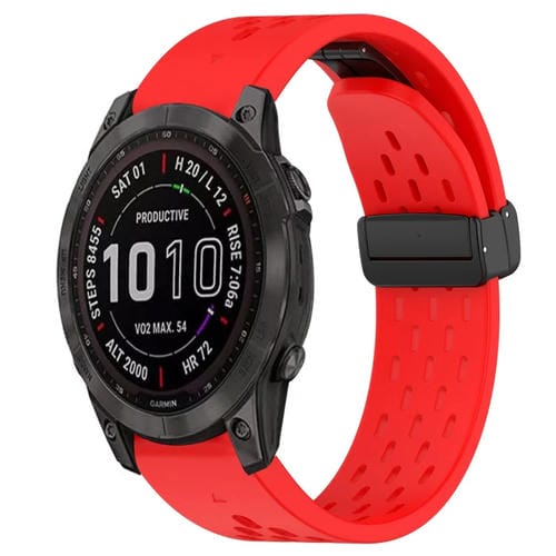Correa de Reloj para Garmin Fenix 7S Sapphire Solar 20mm Silicona con Orificio y Hebilla Plegable (Rojo)