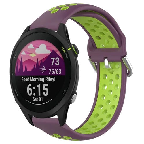 Banda de Reloj Silicona Deportiva para Garmin Forerunner 255 22mm Perforada (Púrpura + Lima)