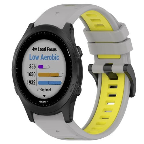 Pour Garmin Forerunner 945 22 mm Sports Bracelet de montre en silicone bicolore (gris + jaune)
