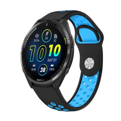 Pour Garmin Forerunner 965 22 mm Sports Bracelet de montre en silicone respirant (noir + bleu)