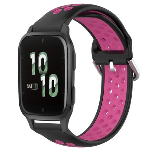 Correa de Reloj Silicona Deportiva Garmin Forerunner Sq2 20mm Transpirable (Negro + Rojo Rosa)