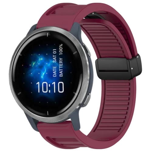 Correa de Reloj para Garmin Venu 2 de Silicona con Hebilla Magnética Plegable 22mm (Rojo Vino)