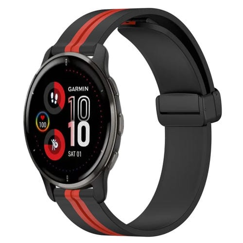 Correa de Reloj para Garmin Venu 2 Plus 20mm Silicona Cierre Magnético Plegable (Negro + Rojo)