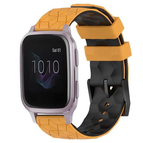 Banda de Reloj Silicona para Garmin Venu Sq 20mm Patrón de Fútbol (Amarillo + Negro)