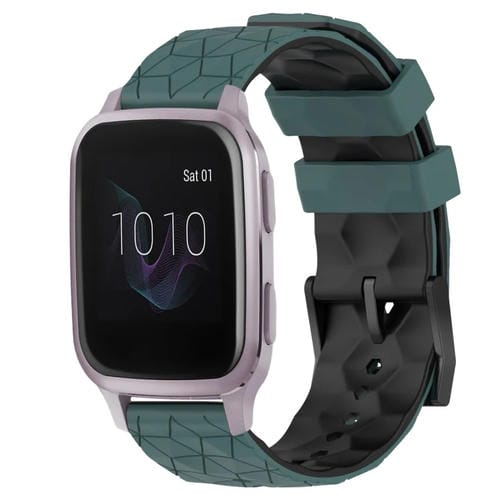 Banda de Reloj para Garmin Venu Sq 20mm Patrón de Fútbol Silicona Dos Colores (Verde Oliva + Negro)