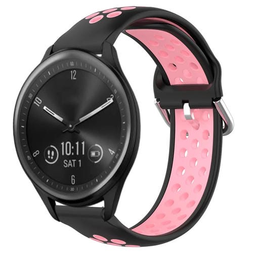 Banda de Reloj Garmin Vivomove Sport 20mm Silicona Deportiva Transpirable Perforada (Negro + Rosa)