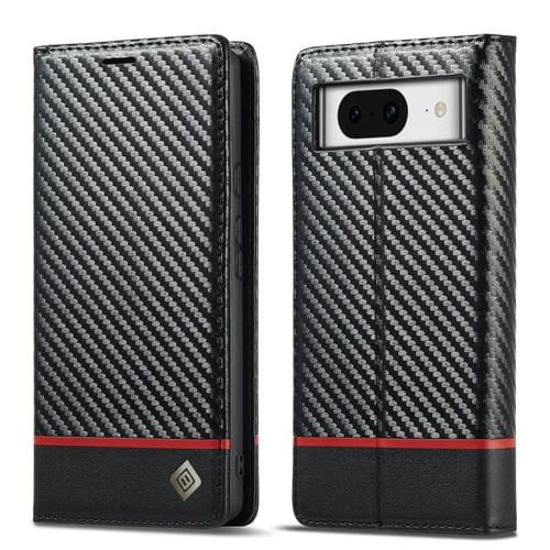 Funda de Cuero Fibra de Carbono para Google Pixel 8 Lc.Imeeke (Negro Horizontal)