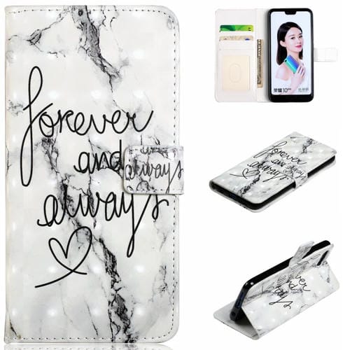 Funda de Cuero para Honor 10 con Dibujo 3D en Relieve al Óleo (Palabras de Mármol)
