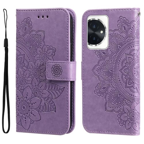 Funda de Cuero para Honor 100 con Estampado de Flores de 7 Pétalos (Púrpura Claro)