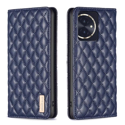 Funda para Honor 100 con Tapa de Cuero Magnético Diamond Lattice (Azul)