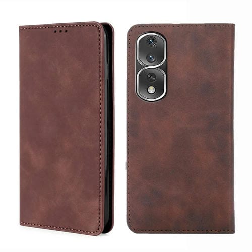 Funda Magnética de Cuero para Honor 80 Pro con Tapa Horizontal (Marrón Oscuro)