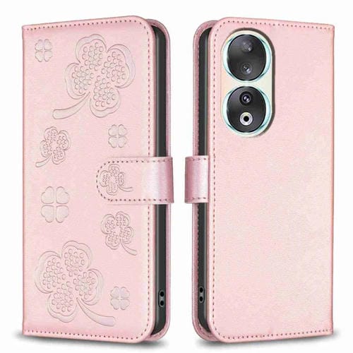 Funda de Cuero para Honor 90 5G con Relieve de Cuatro Hojas (Rosa)