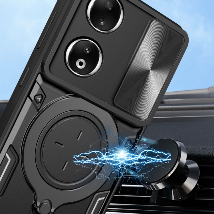 Funda para Honor 90 5G con Soporte Magnético y Escudo Deslizante Textura de CD (Plateado)
