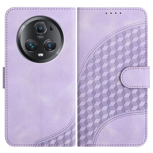 Funda de Cuero para Honor Magic5 Pro Yx0060 con Relieve y Cabeza de Elefante con Cordón (Púrpura Claro)