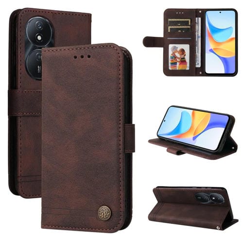 Funda de Cuero Skin Feel Life Tree para Honor Play 50 Plus con Botón de Metal (Marrón)