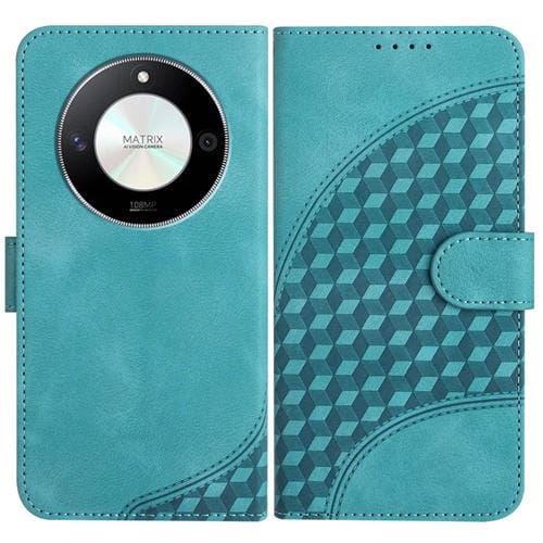 Funda de Cuero para Honor X50 Yx0060 con Relieve y Cabeza de Elefante con Cordón (Azul Claro)