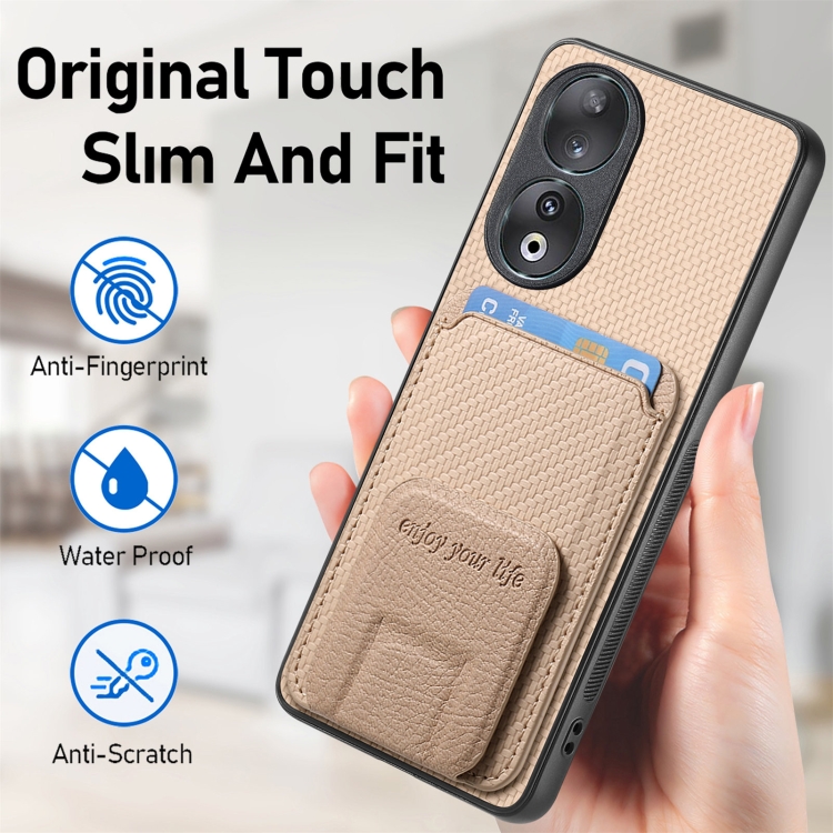 Funda para Honor X8 5G con Soporte Plegable y Bolsa para Tarjetas Fibra de Carbono (Caqui)
