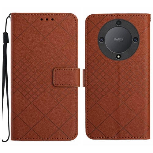 Funda de Cuero para Honor X9A y Magic5 Lite 5G con Textura de Rejilla Rómbica (Marrón)
