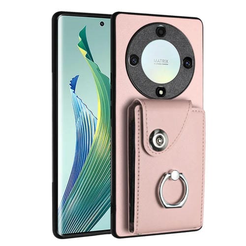 Funda para Honor X9A y Magic5 Lite de PU con Soporte para Anillo y Bolsa para Tarjeta (Rosa)