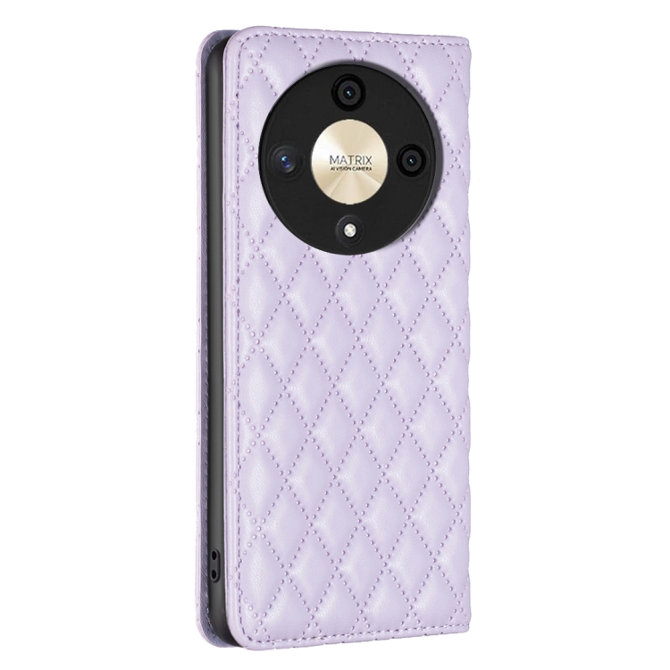 Funda para Honor X9B y Magic6 Lite 5G con Tapa de Cuero Magnético y Entramado de Diamantes (Púrpura)
