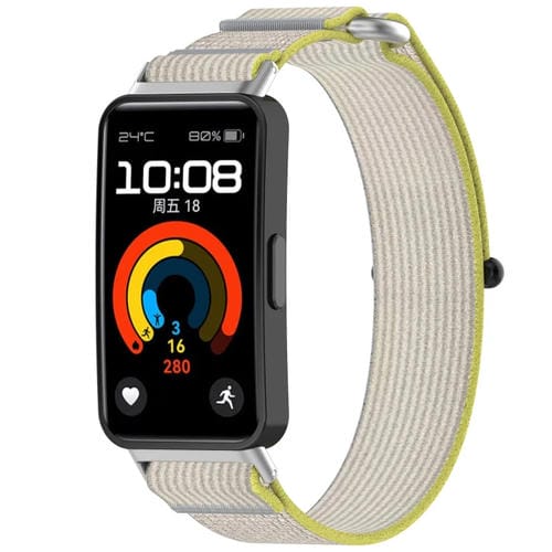Correa de Reloj para Huawei Band 9 con Cierre de Gancho y Bucle de Nailon (Amarillo Gris)