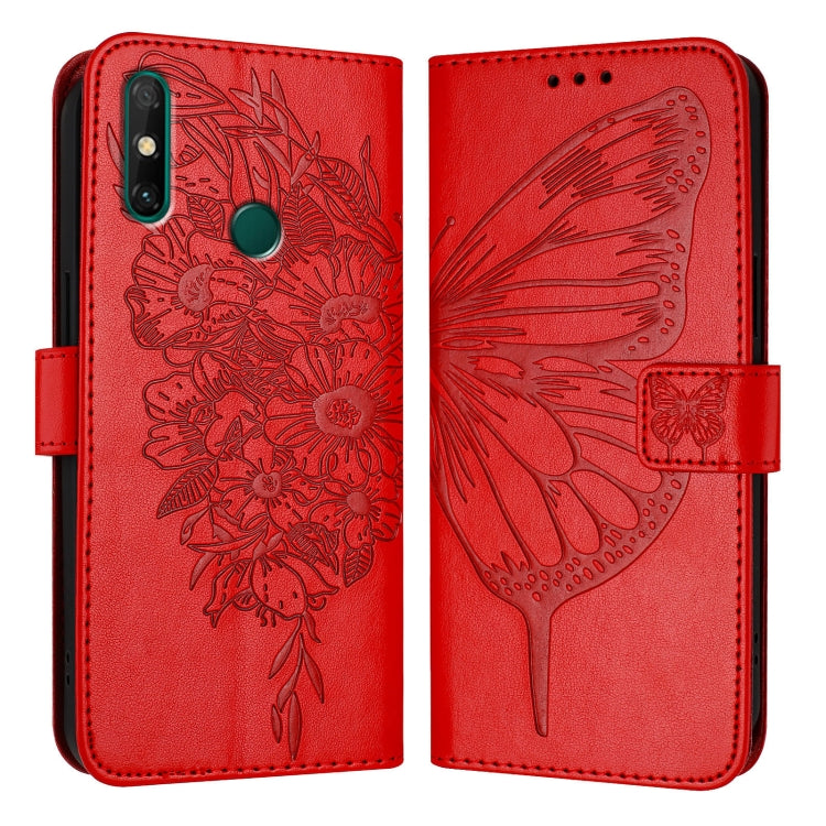 Funda para Huawei Enjoy 20 Se Y7A 4G P Smart 2021 de Cuero con Mariposa en Relieve (Rojo)