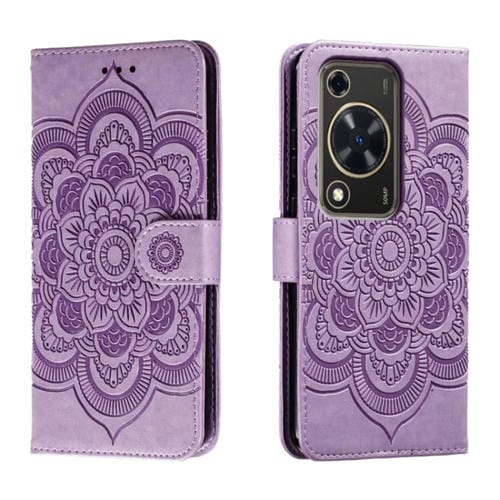 Funda de Cuero Huawei Enjoy 70 con Patrón en Relieve Sun Mandala (Púrpura)