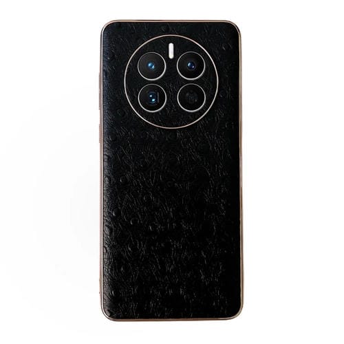 Funda para Huawei Mate 50 con Revestimiento Nano Textura Avestruz de Cuero Genuino (Negro)
