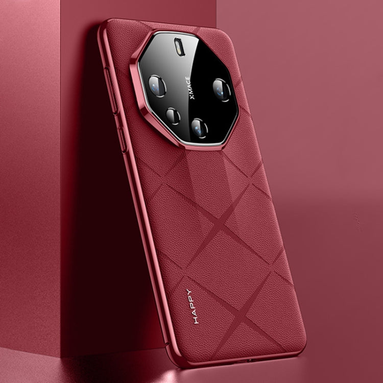 Funda de Cuero para Huawei Mate 60 Rs Ultimate para PC (Rojo Vino)