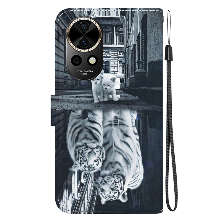 - 1x Funda de Cuero para Huawei Nova 12 con Dibujo Coloreado y Textura de Cristal (Reflejo de Tigre Gato)