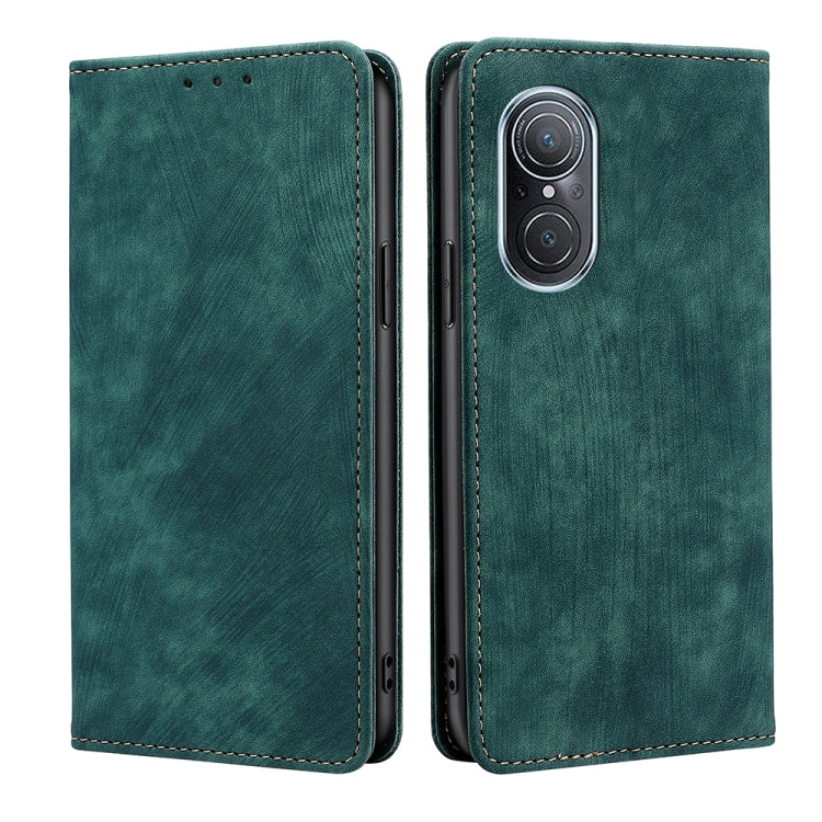 Funda de Cuero Magnética Huawei Nova 9 Se 4G con Rfid y Cepillo Antirrobo (Verde)
