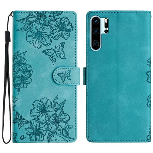 Funda para Huawei P30 Pro Cherry Blossom Butterfly Skin Feel de PU en Relieve (Verde)