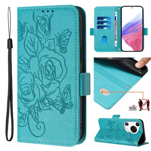 • 1x Funda de Cuero Antirrobo RFID para Huawei Pura 70 Pro con Relieve (Azul Claro)