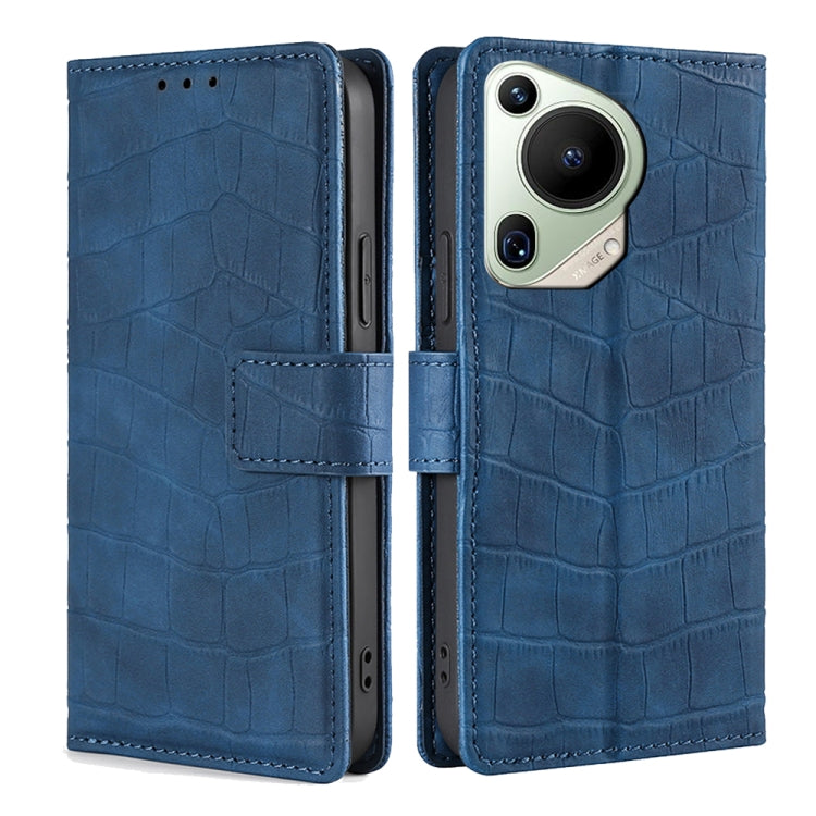 Funda para Huawei Pura 70 Ultra 5G de Cuero con Cierre Magnético y Piel de Cocodrilo (Azul)