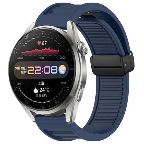 Correa de Silicona para Huawei Watch 3 Pro con Hebilla Magnética Plegable 22mm (Azul Medianoche)
