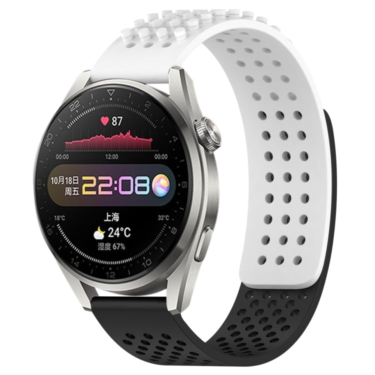 Correa de Silicona para Huawei Watch 3 Pro con Puntos 3D Transpirables y Orificios de 22mm (Blanco + Negro)