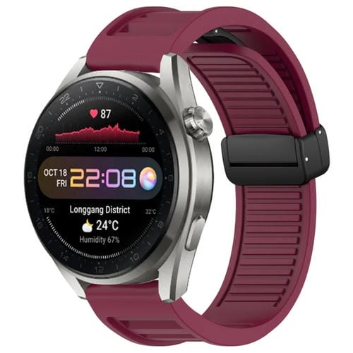 Correa de Silicona para Huawei Watch 3 Pro con Hebilla Magnética Plegable 22mm (Rojo Vino)