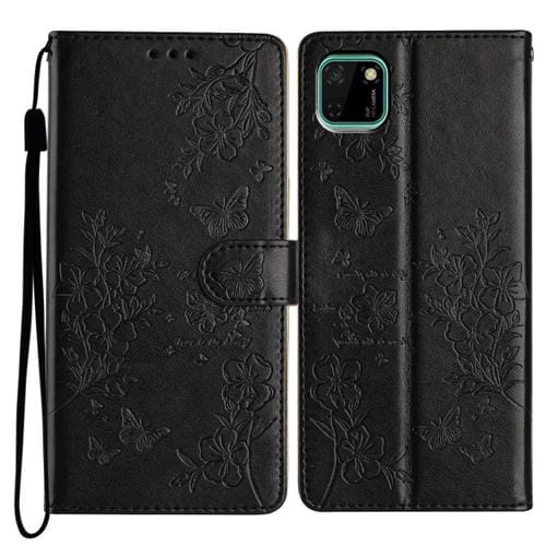 - 1x Funda de Cuero para Huawei Y5P Butterfly Love Flower en Relieve (Negro)