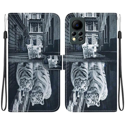 Funda para teléfono Infinix Hot 11S Nfc X6812B cuero dibujo coloreado textura cristal (Reflejo Tigre Gato)