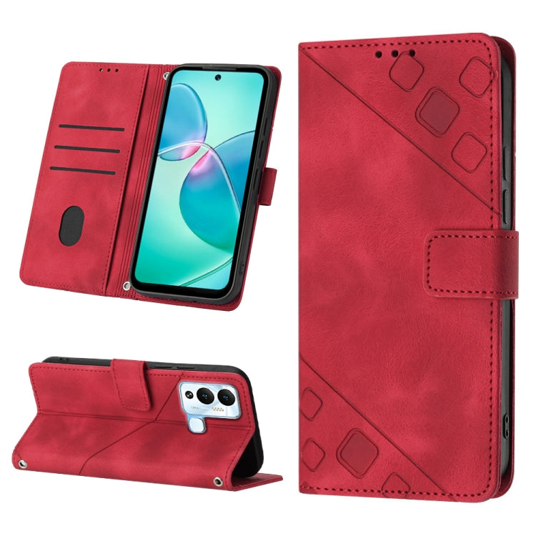 Funda de Cuero En Relieve para Infinix Hot 12 Play y Hot 12 Play Nfc (Rojo)