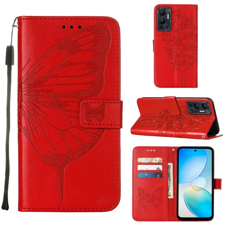 Funda de Cuero para Infinix Hot 12 X6817 con Tapa de Mariposa en Relieve (Rojo)