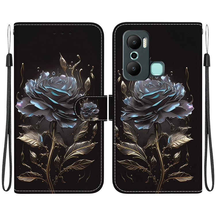 Estuche de Cuero para Infinix Hot 20 Play con Dibujo Coloreado y Textura de Cristal (Rosa Negra)