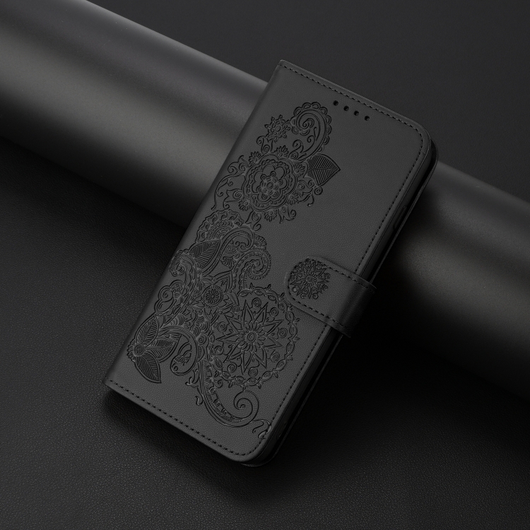 Funda de Cuero para Infinix Hot 30 Datura Flower con Tapa en Relieve (Negro)