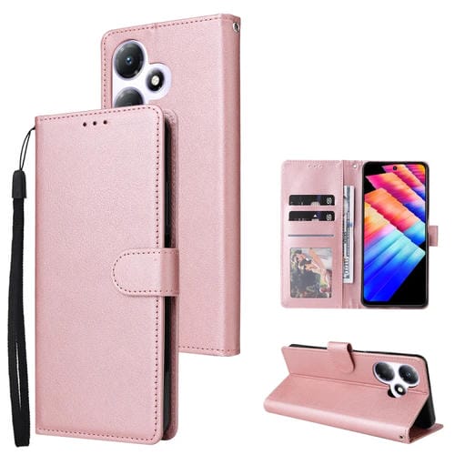 Funda para Infinix Hot 30 Play de Cuero Multifuncional con 3 Ranuras para Tarjetas (Oro Rosa)