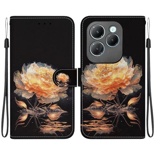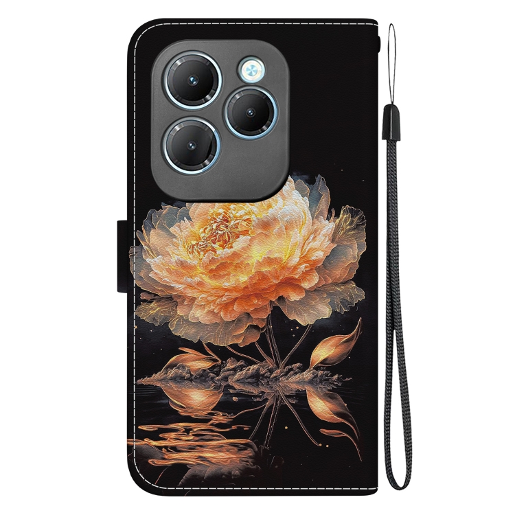 Funda de Cuero para Infinix Hot 40/40 Pro con Dibujo Coloreado y Textura de Cristal (Peonía Dorada)